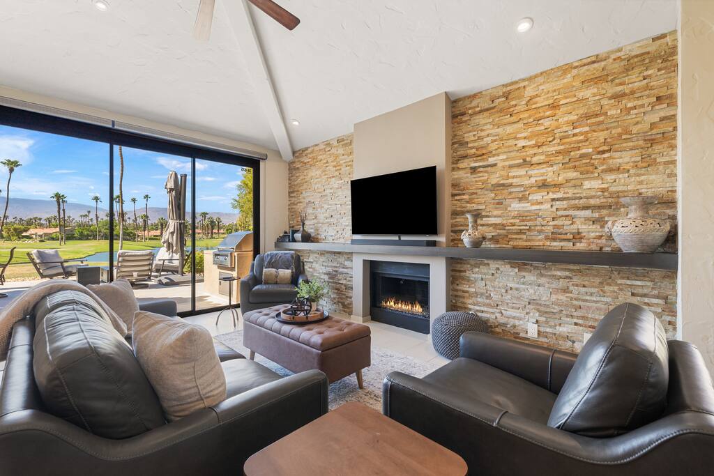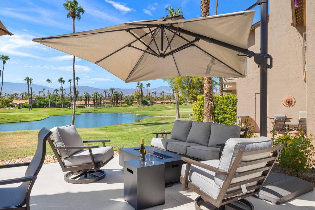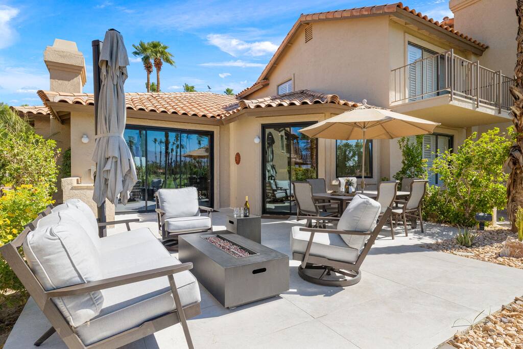 The heart of the home is a fully stocked kitchen, ready for any culinary adventure. It's thoughtfully equipped with dishes, utensils, stemware, and even champagne flutes for celebratory toasts. Enjoy your morning brew from the coffee and tea bar, offering both drip and Keurig options. For your cooking needs, you'll find an array of cookware, bakeware, a Crockpot, waffle maker, toaster, and blender. Indulge in Unrivaled Views and Outdoor Living The true gem of this desert sanctuary is the extended, south-facing patio. Here, the views are simply mesmerizing. Gaze upon a stunning lake, lush fairway, and manicured green, all set against the dramatic backdrop of majestic palm trees and the towering San Jacinto Mountains. This south-facing orientation provides not only the best views but also optimal protection on hot days, making it the perfect spot to start your day with a peaceful morning coffee or wind down with a sunset cocktail. The patio is an entertainer's dream, featuring a gas BBQ along with comfortable dining and lounge seating. For your convenience, enjoy super-fast WiFi throughout the condo. We've also provided a range of amenities to enhance your stay, including a golf cart for easy navigation, tennis racquets, pool towels, floats, pool toys, and yoga mats. Experience the "Fun Club" at Palm Valley Country Club Your stay includes unparalleled access to the Award-Winning 100,000 sq ft. Palm Valley Country Club, affectionately known as “The Fun Club.” Located just a walk or golf cart (our 4-seater is at your disposal!) away, this club offers a vibrant calendar of social and athletic activities. As our Tennis & Spa Membership guests, you'll have full access to 13 tennis courts or 12 pickleball courts (nominal guest fee) with night lighting for evening play, where you can join in social or competitive play, including round-robins, tournaments, and lessons. The club boasts an Olympic-size cabana pool where lessons and aquatic classes are offered, alongside 46 other refreshing swimming pools and hot tubs scattered throughout the property – one of which is just steps away from your patio door! Maintain your fitness routine at the clean and well-equipped gym (nominal guest fee), offering various fitness classes. After a workout, dine at one of the two Clubhouse Restaurants, pamper yourself at the salon, or indulge in the luxurious posh spa with a sauna and an incredible treatment menu. This desert gem truly offers everything you need for a memorable and rejuvenating escape! Palm Valley Country Club is minutes away from fine dining, hiking, El Paseo Shopping, Grocery Stores, and so much more! 20 minutes from Palm Springs Airport 20 minutes from Coachella and Stage Coach 15 minutes from Agua Caliente Resort and Casino 10 minutes from Acrisure Arena 15 minutes from El Paseo Dinning & Shopping 45 minutes from Joshua Tree 10 minutes from Living Desert Zoo Gardens Amenity Fees - $10/day or $40/Week for Tennis, Pickleball - $20/day or $40/Week for Athletic club, Sauna, Steam Room, Gym, and racquetball Parking There are two private driveway spaces, and plenty of street parking. Only authorized vehicles are allowed Community Security monitors guest vehicles, therefore, no unregistered guests nor vehicles are allowed. This property is near Highway 10 and a railroad. You really can't hear any traffic or train noise from inside the house or on the patio. The sound of a passing train is only audible from the front of the house. I have put sound machines in all rooms just in case though.